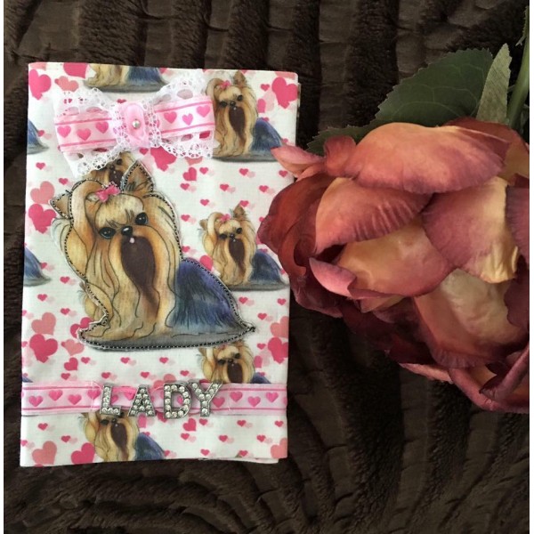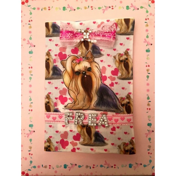 Подвързия за паспорт на Обичковче "My Luxury PassPort Case by FREA", “My Yorkie Love collection by FREA " и панделка “My Yorkie Love collection by FREA "
