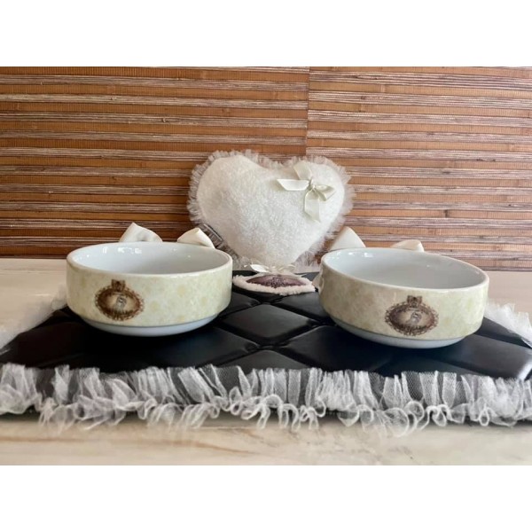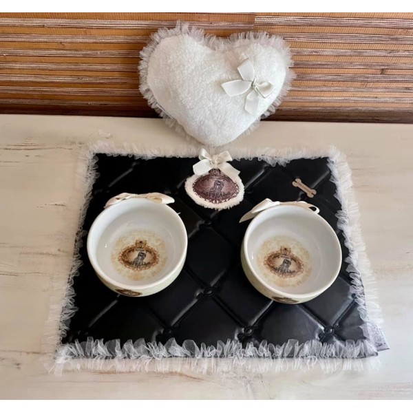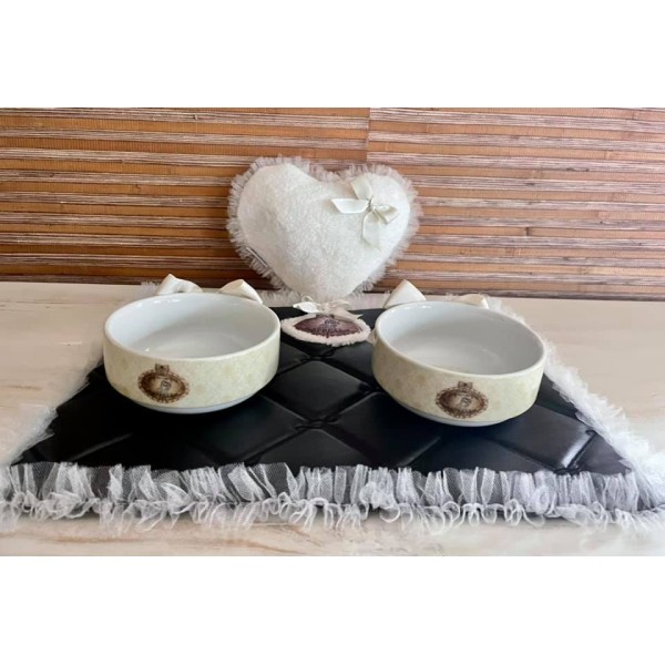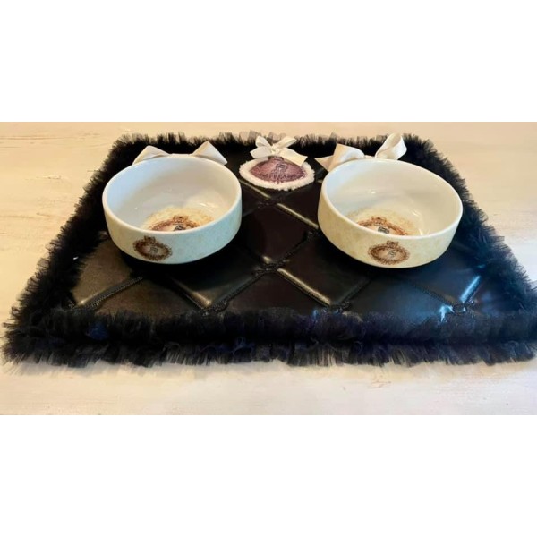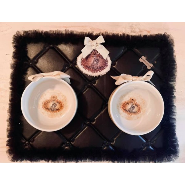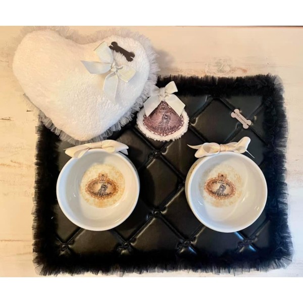 Комплект за хранене: подложка и 2 броя дизайнерски антибактериални купички и възглавничка "My Sweet Yorkie Home collection by FREA"